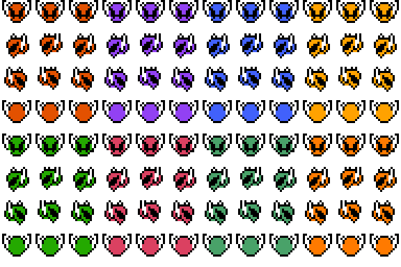 4 body colors, dogs. 4 armors, 5 hair styles. Hat, Headband and Helm.